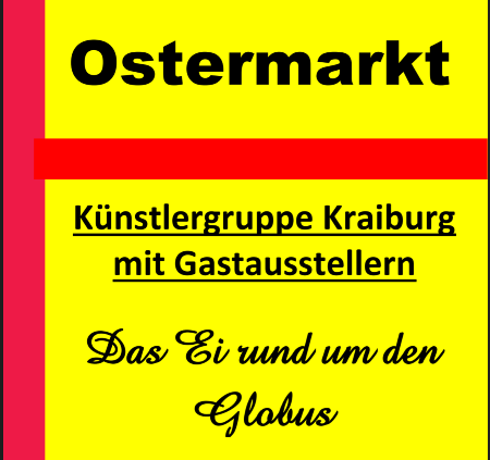 Einen Ostermarkt veranstaltet die Künstlergruppe Kraiburg am 14. und 15. März in der Remise in der Jettenbacher Straße. Die Ausstellung ist am Samstag und am Sonntag jeweils von 13 bis 18 Uhr geöffnet.
