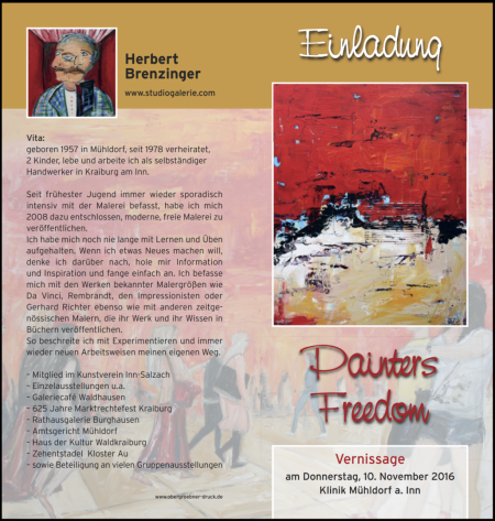 Fred Brandmeier wurde in Kraiburg geboren, erlernte die Kirchenmalerei. Über München, Frankreich und Italien führten seine Wege als Kunstmaler, der Kreis schloss sich für ihn wieder, als er wieder nach Kraiburg zurückkehrte, wo er letztes Jahr gestorben ist. Sein Talent war so vielseitig was sich in seinen Bildern widerspiegelt..