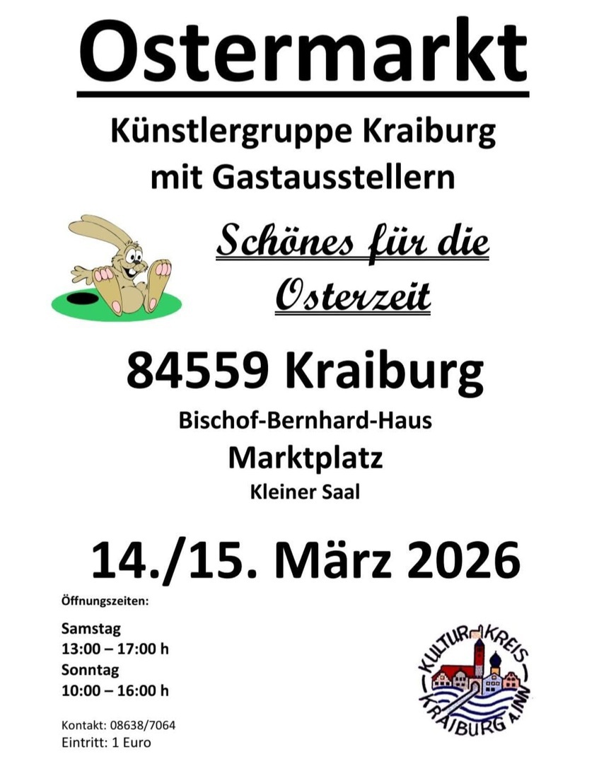 Einen vielfältigen Ostermarkt veranstaltete die Künstlergruppe Kraiburg im Kulturkreis am 14. und 15.03.2015 in der Remise in der Jettenbacher Straße.